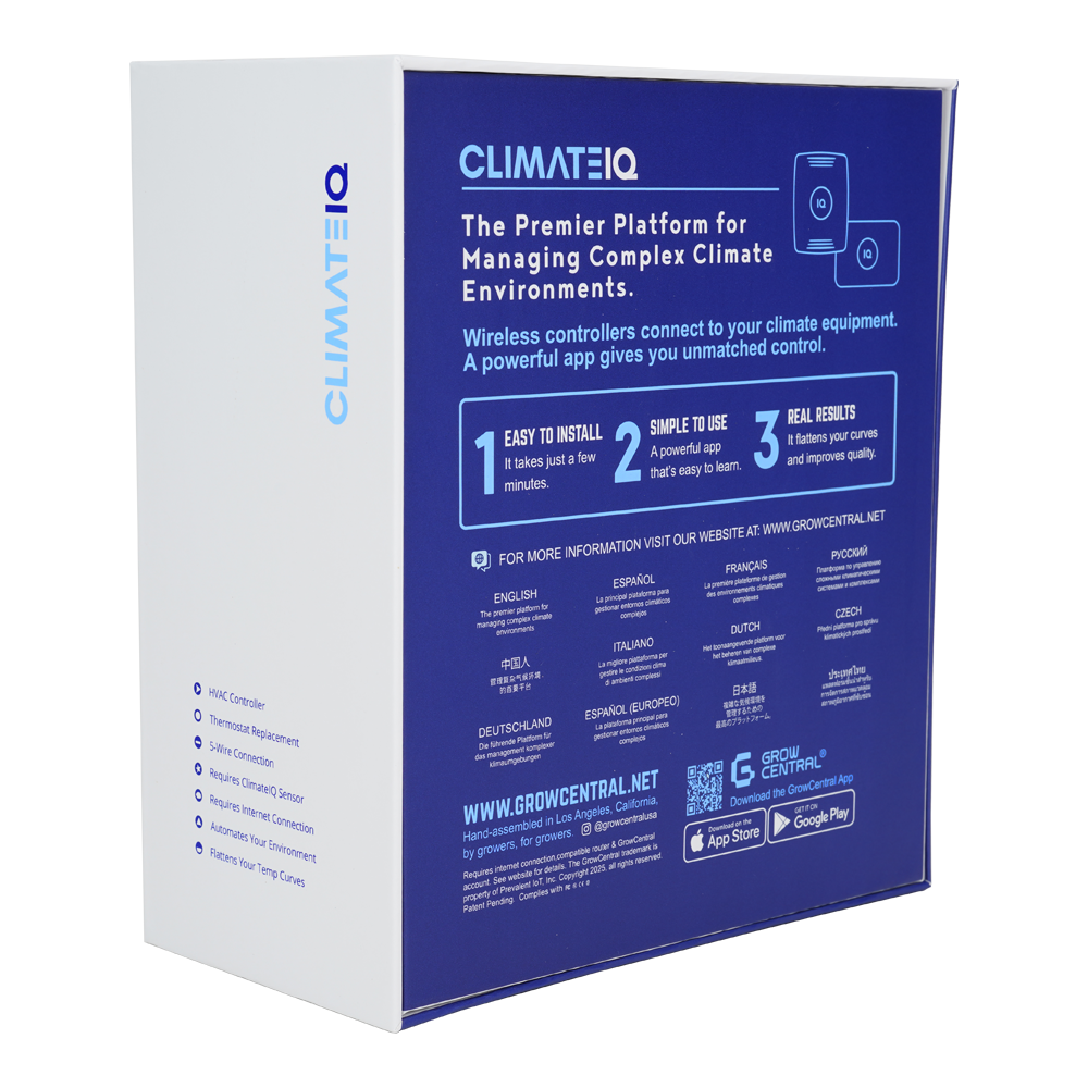 Control your climate by VPD when paired with ClimateIQ HVAC and Humidity Controllers.